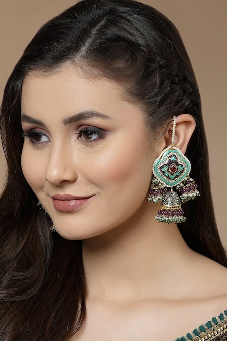 Meenakari work with intricate detailing, American diamonds embellishments, Delicate pearl and bead drops