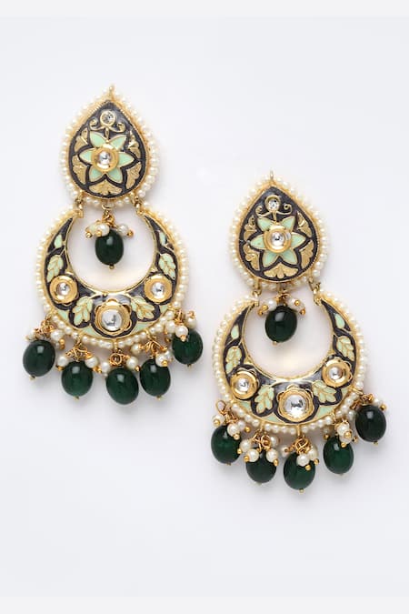 Blue meenakari work, Kundan embellishments, Green bead drops