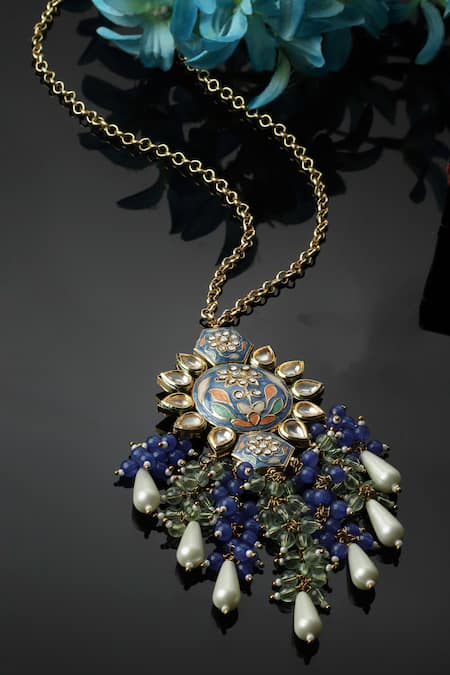 Blue Meenakari Work Embellished Pendant Necklace