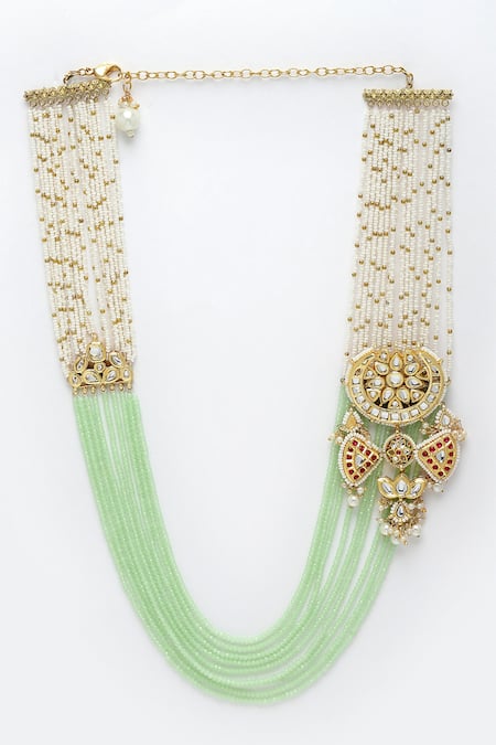 Crescent moon motif design, Multi-layered structure, Combination of pearls and natural stones