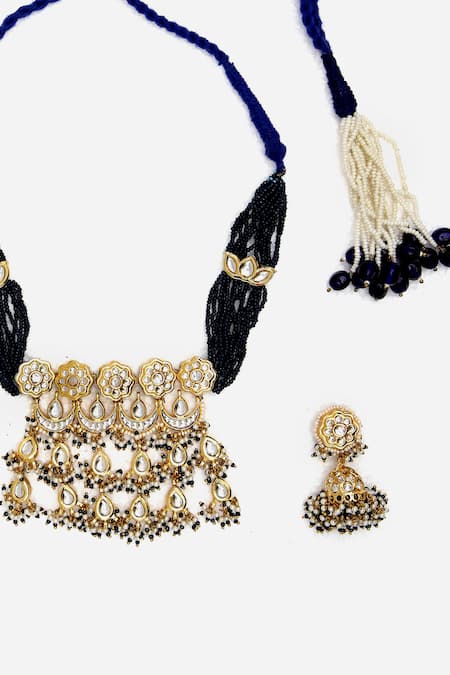 Blue Pearls, Gota Patti, Stones Padma Noor Kundan Necklace Set