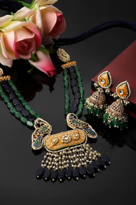 Multi Color Pearls, Stones Peacock Kundan Embellished Necklace Set