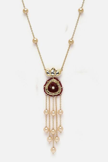 Gold plated pendant necklace featuring kundan, pearls, and natural stone embellishments