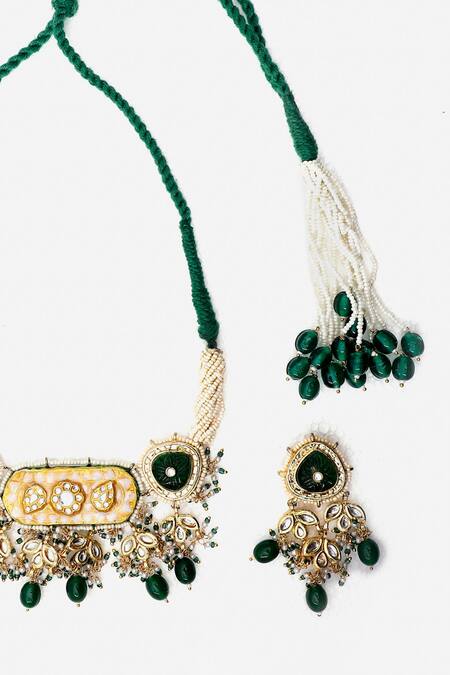 Green Pearls Phoolista Kundan Meenakari Choker Set