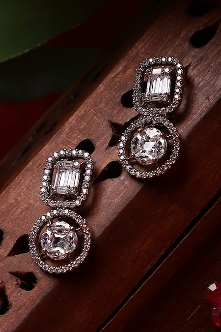 Buy_Dugran By Dugristyle_Silver Plated Crystals, Diamonds Rosi Geometric Drop Earrings _at_Aza_Fashions