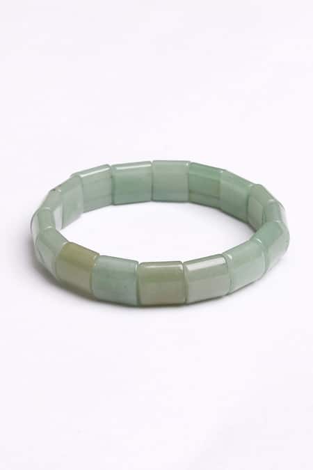 A green and white elasticated bracelet crafted from alloy, featuring natural cutting stones.