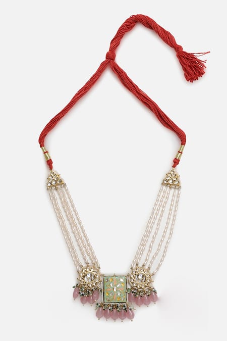 Buy_Dugran By Dugristyle_Multi Color Meenakari Kundan Pearl Choker Necklace _Online_at_Aza_Fashions