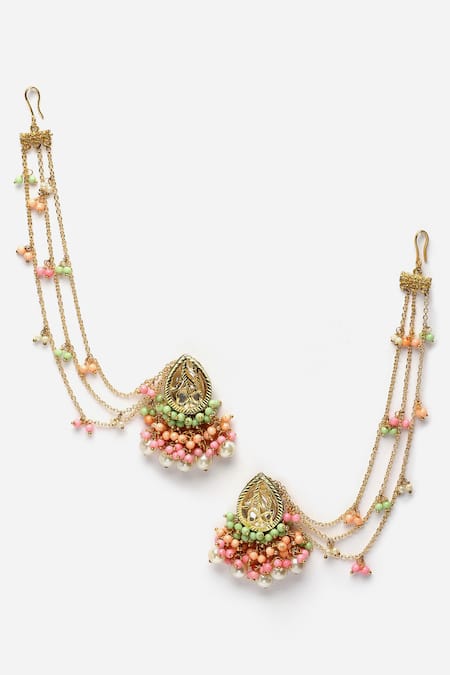 Tear drop shape with vintage cut work details, Attached layered kaanchain, Drop tassels adorned with natural stones