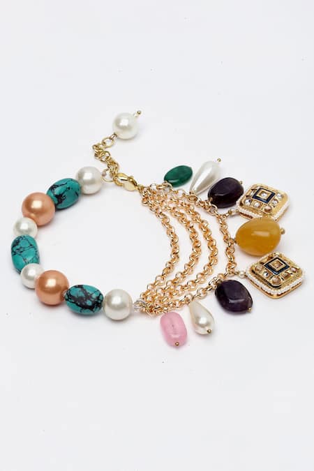 Kundan encrusted floral motifs, Layered chain detailing, Faux stone drops
