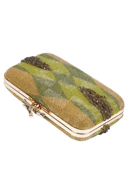 Ombre green box clutch featuring all-over bead and uncut stone work