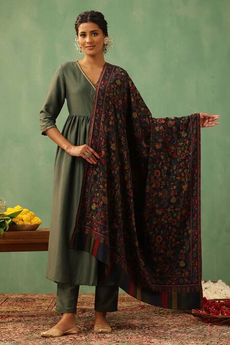 Multicolor shawl made from fine wool featuring a paisley floral kani pattern