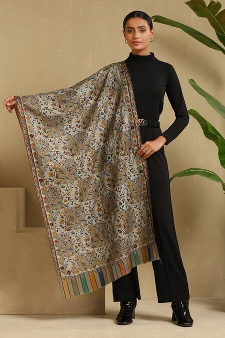 White Aruna Flower Woven Stole