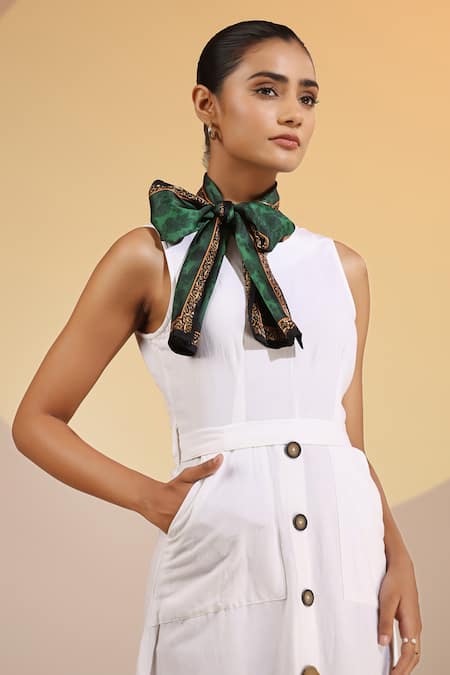 Green Embroidery Arwa Silk Floral Neck Scarf