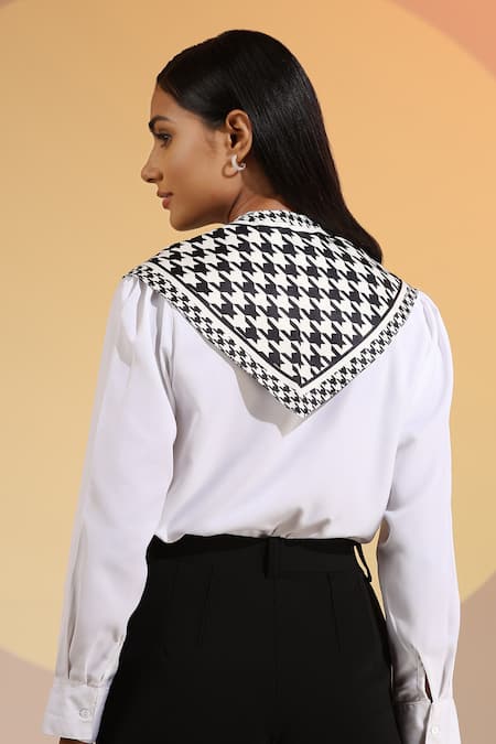 Buy_Dusala_Black Ashvy Houndstooth Pattern Neck Scarf _at_Aza_Fashions