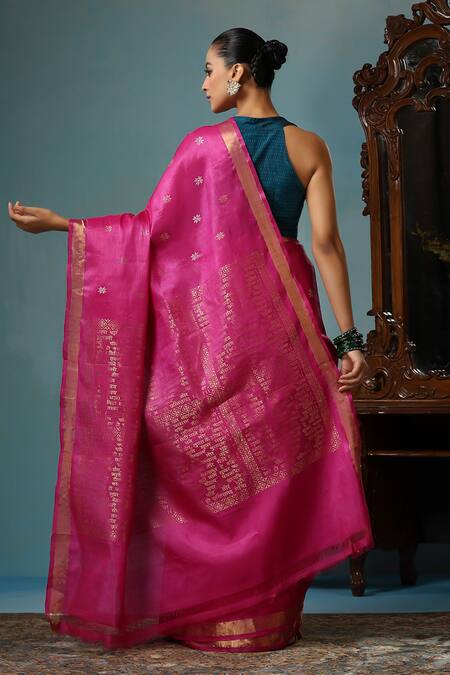 Magenta Kota Doria Blossom Handwoven Saree With Running Blouse Piece