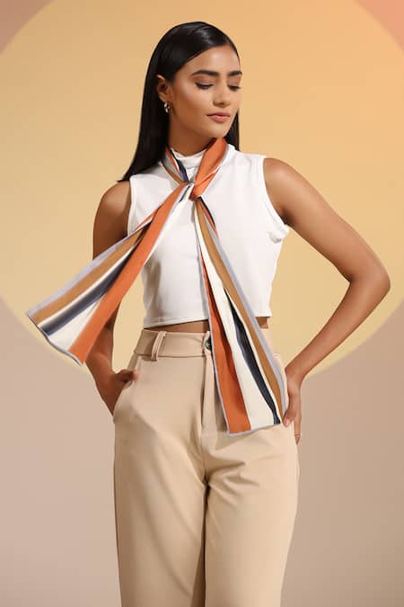 Multi Color Carmal Stripe Pattern Neck Scarf