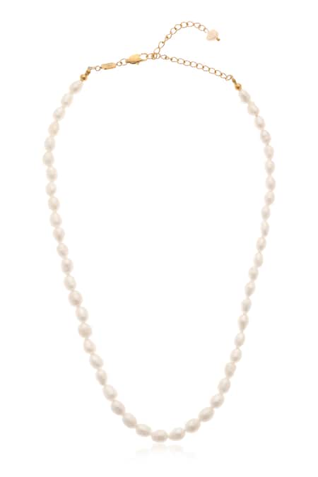 Golden necklace featuring freshwater pearls and an adjustable chain.