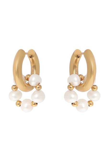 Gold Plated Pearls, Beads Huggie Trend Earrings
