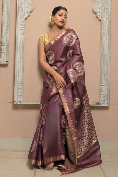 Purple Tussar Zari Madhu Mandala Pattern Handwoven Saree With Running Blouse