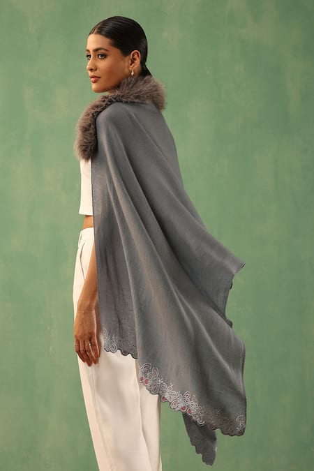 Grey Mishty Fur Collar Embellished Stole