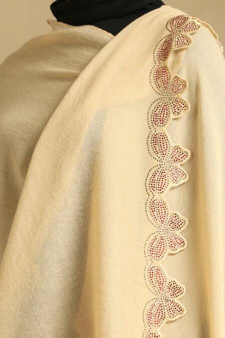 Corn yellow cashmere stole embellished with high-quality crystal stones in a butterfly pattern