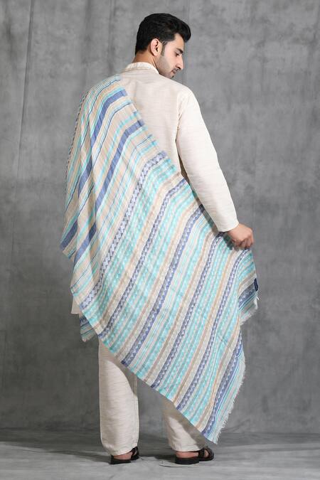 Blue Woven Cashmere Fine Wool Zig Zag Stole