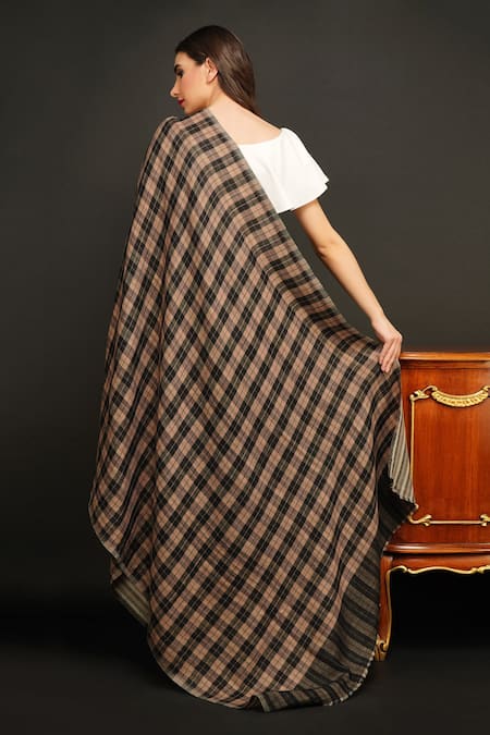 Buy_Dusala_Black Handwoven Pashmina Reversible Checkered Shawl _Online_at_Aza_Fashions