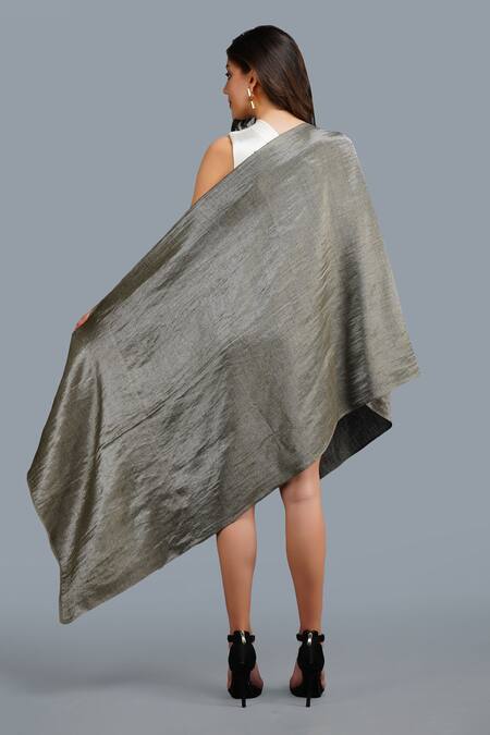 Silver Handwoven Reversible Zari Pashmina Shawl