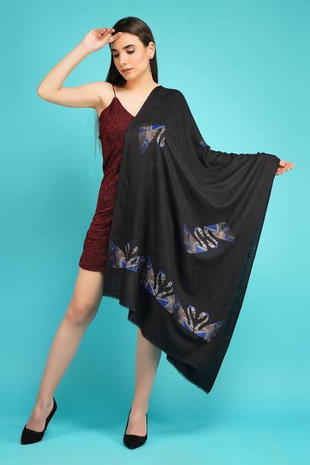 Buy_Dusala_Black Stone Embroidered Stole_at_Aza_Fashions