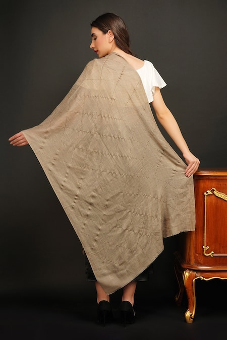 Beige stone embroidered stole featuring a diagonal pattern