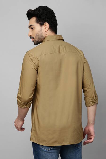 Brown Cotton Double Flap Pocket Shirt