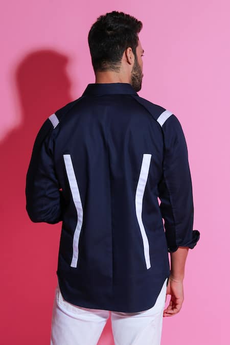 Blue cotton blend shirt featuring a collar neckline and full sleeves