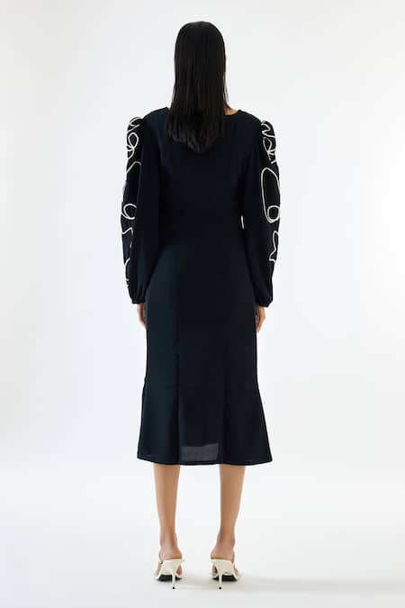 Abstract floral embroidery detail, White piping accent, Puff sleeve design