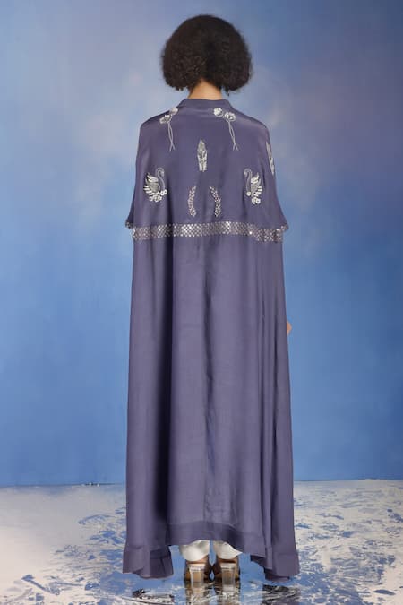 Buy_Eclat By Prerika Jalan_Purple Crepe Embroidered Bead Work Mandarin Collar Cape Style Tunic And Pant Set _at_Aza_Fashions