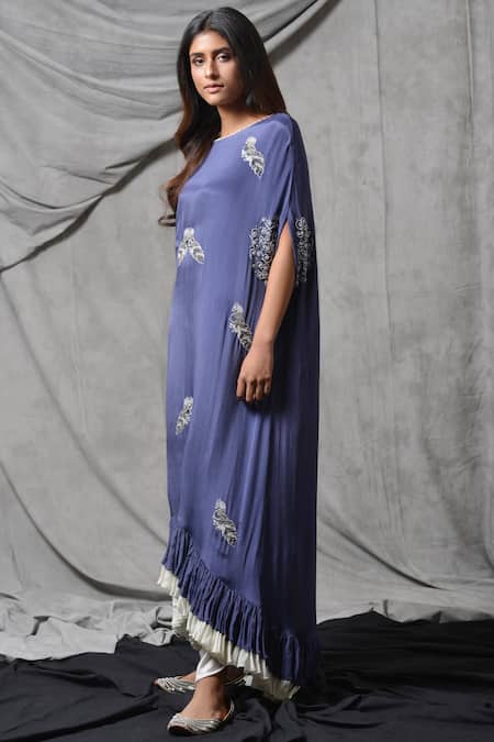 Scalloped detail neckline, Cape style kurta, Lining: Taffeta