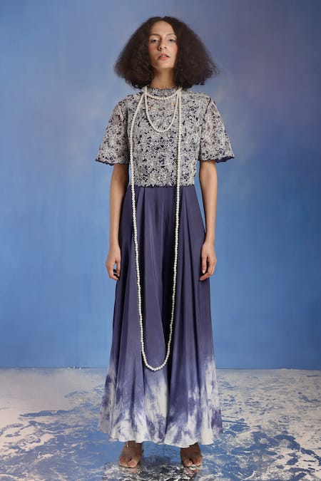 Buy_Eclat By Prerika Jalan_Purple Crepe Embroidered Bead Work High Neck Flared Jumpsuit And Top Set _at_Aza_Fashions