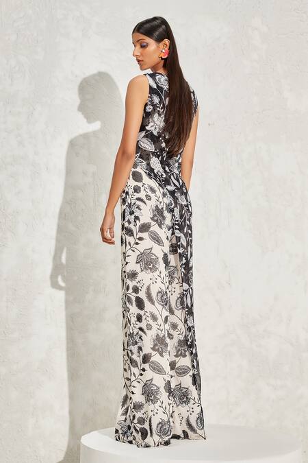 Black Georgette Hand Embellished Floral Eden Scallop Overlapped Jumpsuit