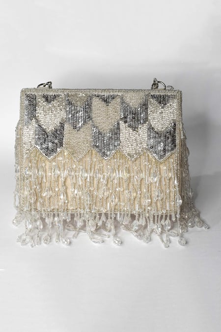 Multi-bead tassels, Embroidered top handle strap with crystal hangings, Tone-on-tone sequin and cutdana hand-embroidery