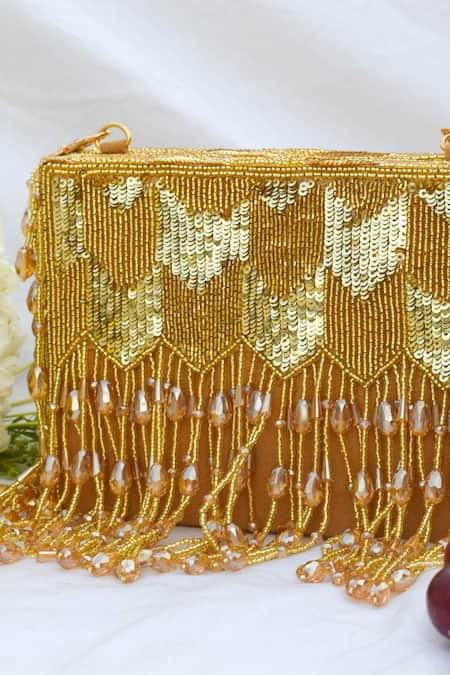 Gold Embroidered Dishi Tassel Clutch With Sling