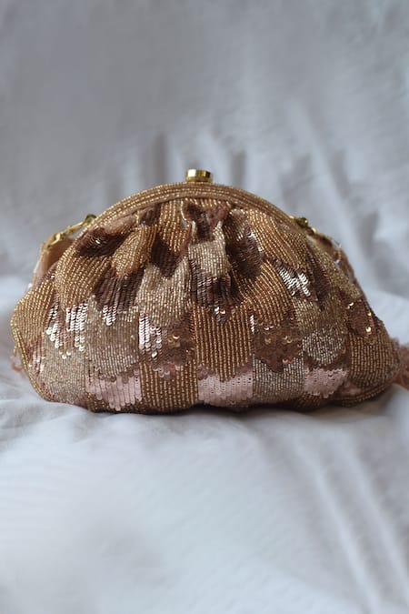 Pink velvet clutch featuring intricate sequin and cutdana hand embroidery