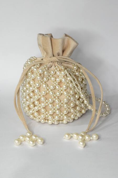 Beige Pearls Jaimini Beaded Potli Bag