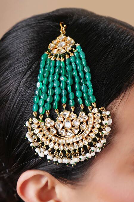 Buy_Ekathva Jaipur_Green Polki And Bead Embellished Passa_at_Aza_Fashions