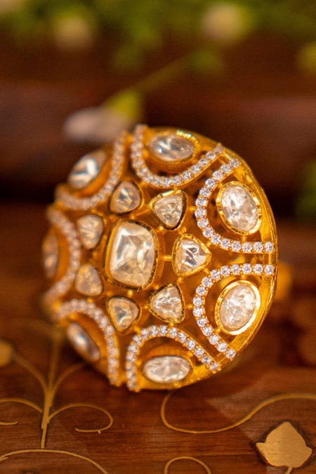 Gold Plated Imitation Diamonds Moissanite Polki Designer Ring