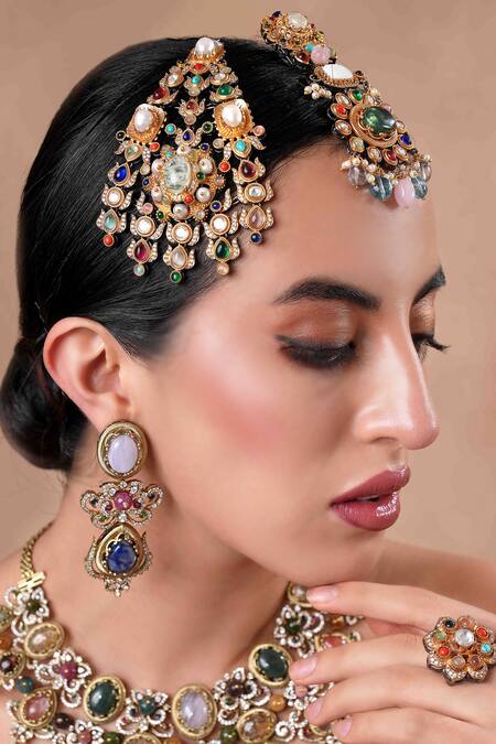 22kt gold plating, Multicolored stone embellishments, Intricate pearl details