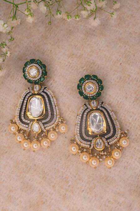 22k gold plating, Emerald moissanite polki embellishment, Bead drop details
