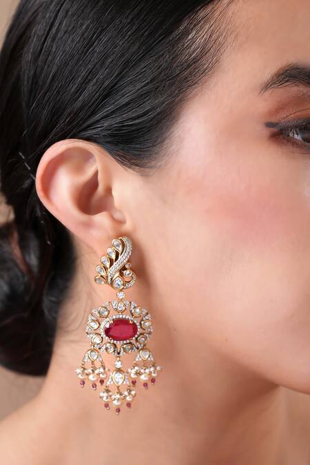 22k gold plating, Ruby stone embellishment, Moissanite polki detailing