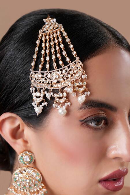 Gold Plated Polki And Pearl Embellished Passa