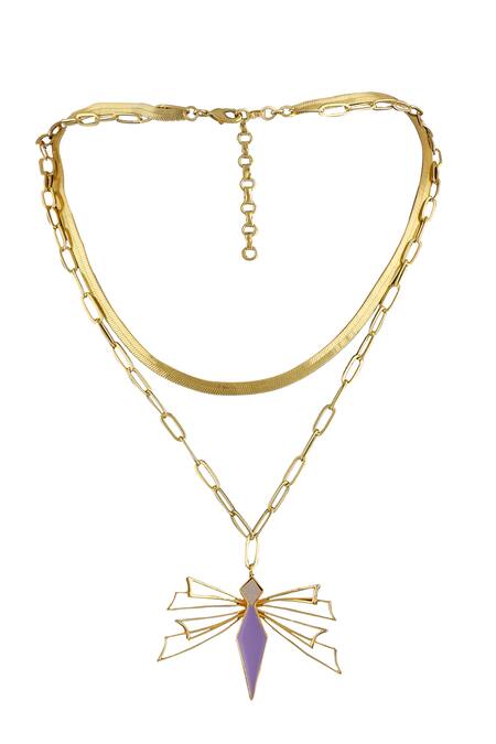 22k gold plated layered chain featuring a lilac enamelled geometric motif