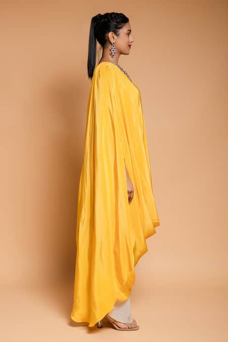 Yellow Crepe Asymmetric Draped Tunic With Palazzo Pant