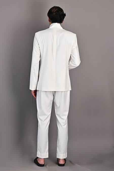 Off white jacket with standing collar & front pockets. Comes with pant.